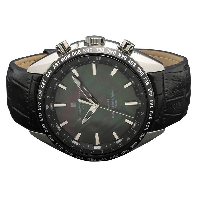 ブランド初のGPS電波受信機能付き腕時計。世界30都市対応のワールドタイマーやサマータイムといった高機能。サルバトーレ・マーラであるがゆえのデザイン性を纏ったハイスペックモデルです。フィット感に優れたレザーベルトモデル。