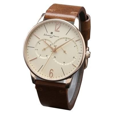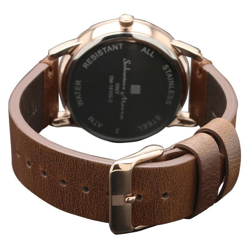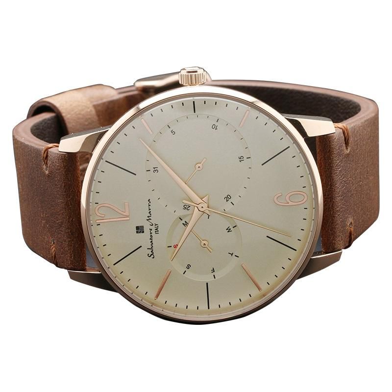 凹凸を用いてデザインされた文字盤により、必要最低限の装飾だけを残したシンプルながら高級感のある見た目を実現しています。マットなレザーベルトには同色のステッチを施し、カジュアルさも確立。オンオフ問わず活躍してくれるお洒落な一本です。