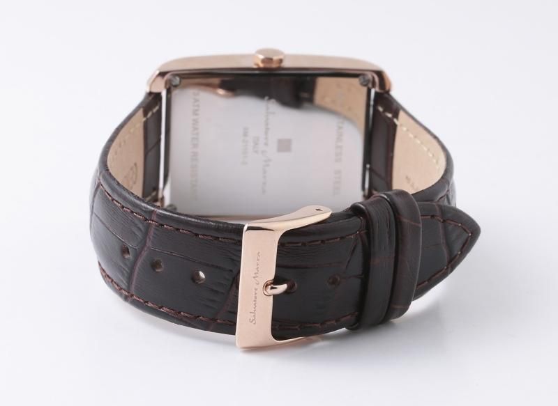 腕に収まりのいいサイズのレクタンギュラー(スクエア)ケースの腕時計。 ガラスにカット加工を施すことにより立体感や高級感が増し、シンプルなデザインの中での良いアクセントになっています。どこかレトロな雰囲気も漂う、年齢・性別問わずご着用頂ける落ち着きが魅力です。